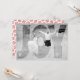 Transparent overlay joy newlyweds Christmas holiday red photo card. The back includes a red and white snowflake pattern.