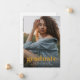 Overlay Modern Mustard Script with Three Photos Graduation Announcement