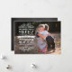 Overlay with a very light shadow transforms your picture into a professionally printed greeting card. Rustic modern vintage typographic chalkboard effect text, with your custom photo, name and year on front, with a smooth chalkboard effect printed on back. Use any colour photo. Trendy grey with fresh white chalk handwritten look is a modern theme for the Holidays!