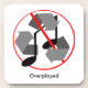 A music note in black, surrounded by a grey recycle symbol, within a red crossout stamp. Intended message do not overplay recycled music, try something new.