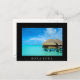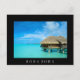 Postcard with a honeymoon overwater bungalow in a luxury resort in the clear blue lagoon of the pacific island of Bora Bora, near Tahiti in the French Polynesia archipelago with a black border and the text: 'Bora Bora'.
