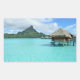 Sticker of a luxury overwater bungalow resort in the clear blue lagoon of the pacific island of Bora Bora, near Tahiti in French Polynesia.
