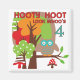 Owl 4th Birthday T-shirts, bodysuits, mugs, magnets, keepsakes, posters, bags, and more featuring an owl, lots of trees, and text that reads "Hooty Hoot Look Whoo's 4"!
