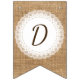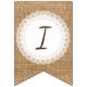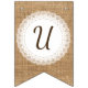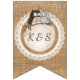 Super cute casual and rustic wedding design features a burlap texture look background on each of the flags. Some of the flags feature a white circle lace doily with two cute owls sitting on a branch at the top of the a beige inner circle. The owls are brown with light blue trim and light blue with beige trim. Inside these circles with the owls is customisable text to add your own wording and some can be customised with the couples first name initials. The rest of the flags have a plain white circle doily with text inside that spells out Just Married. Matching Owl Always Love You Casual Wedding Invitations and RSVP cards also available.