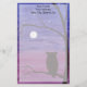 Watercolor, Pen & ink of a Crested Owl perched on a bare tree branch and silhouetted against a starry, winter sky with full moon.