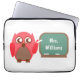 An electronics bag for teachers featuring an illustration of a red owl writing on a chalkboard. Personalise with your name.