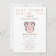Cute Little Pink Baby Owl Baby Girl Shower Invitations with Pink Polka Dot Pink Border simple modern minimalist,