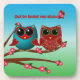 Owl be loving you-is a digital graphic art design. In the centre is a pair of his and her owls hanging out in a floral tree holding wings. The female owl is red with pink and gold scroll work and green eyes. The male owl is blue with aqua blue eyes. The owls have red and gold hearts for wings and a red heart face too. The pair sit on a brown tree limb with little pink flowers and green leaves. The background is a pastel blue-green representing sky and ground. At the top is decorative red text that reads: Owl be loving you always. A little red heart and flowers embellish the text. One text area is in place at the bottom for you to edit and personalise. Edit the text to say anything you like. Delete the text if it's not wanted. -This design does vary a bit depending upon the product.