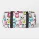 Cute colourful pink, yellow, blue and white kawaii owl birds surface pattern Design On a white background with fade reflection effect Style