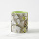 This pretty nature mug features my original photograph of a beautiful owl bird while on a hike, sitting peacefully in a tall tree, processed in a watercolor painterly technique for an artsy style. The handle and inside of the cup are a green tone to complement the artwork.