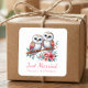 If you want a cute and personal way to share that you’re officially married, this owl sticker is perfect. The sweet cartoon owls, pink green floral accents, and whimsical cottagecore details give it that woodland boho charm everyone loves. It fits beautifully with rustic, country, woodland, and boho wedding styles. Add your names to create a personalized just married wedding announcement sticker that’s adorable on favors, envelope seals, thank‑you notes, or anything you want to dress up with a little newlywed joy.
