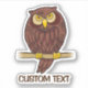 Cartoon illustration of owl sitting on tree branch. Custom Text.