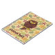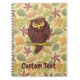 Cartoon illustration of owl sitting on tree branch. Custom text.