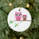 Cute owls are sitting in the tree branch Christmas tree ceramic ornament.