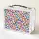 Owl faces doodle pattern birds monogram initials metal lunch box