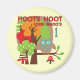 Owl First Birthday T-shirts, bodysuits, mugs, magnets, keepsakes, posters, bags, and more featuring an owl, lots of trees, and text that reads "Hooty Hoot Look Whoo's 1"!