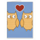 Perfect for kids - design of two owls standing together with a red love heart between them on a sky blue background. Cute and quirky cartoon design inspired by love and friendship.