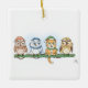 Owl I want for christmas, cartoon owls and cat Ceramic Ornament