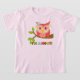 A pretty owl of bright coral with pink and white polka dots and a blue flower sits on a tree branch and multi-colours text reads "I'm a Hoot!" on hoot owl T-shirts, bodysuits, mugs, cards, stickers, bags, stickers, keychains, pillows, journals, and other owl apparel and gift items.