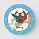 Owl in Tree Tops Personalised Wall Clock - Blue