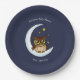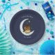 Owl Moon Blue Cute Stars Baby Shower Paper Plate