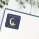 A cute little chubby brown owl sitting in a moon with stars all around in a backdrop of blue.