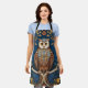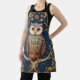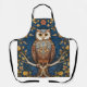 Owl on a branch blue autumn background art nouveau style, William Morris inspired art.