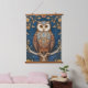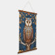 Owl on a branch blue autumn background art nouveau hanging tapestry