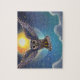 Owl Soars Above Clouds on Starry Moonlit Night Sky Jigsaw Puzzle