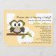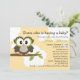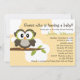 These custom, adorable owl baby shower invitations with a brown and lime green owl perched on a leafy branch on a pretty cloudy day and yellow polkadot background are perfect for a gender neutral owl themed baby shower for the new mummy expecting a baby boy or girl. These cute, modern and trendy personalised owl baby shower invites say "Guess who is having a baby," but it can be customised to say whatever you want. Artwork © Chrissy H. Studios, LLC. All Rights Reserved.