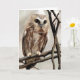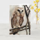 This is a lovely digital painting of an owl sitting quietly on a tree limb. Inside is a thinking of you verse. The card is bright and pretty. The verse is a rhyme.