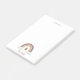 Personalised teacher sticky notes with an owl standing on a book under a rainbow .