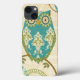 © Veronique Charron / Wild Apple. A patterned image of an owl with circular patterns. There is also a tan coloured floral background in the image.