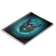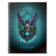Owl with magical elements. The design features an impressive, stylised owl with its wings spread wide, designed in a vibrant colour palette of purple, blue and white. The owl exudes a majestic presence, while its piercing yellow eyes look directly at the viewer, creating a sense of intensity and mystery. Intricate, swirling patterns unfold around the owl, reminiscent of magical symbols, giving the overall image a mystical aura.