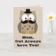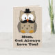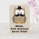 This cute little owl is so adorable with his black dressy hat and black handlebar moustache. I'll owlways love you on Mother's day. Great gift for the Mum who appreciates cute owls and animal cartoons with funny faces. Sandy brown background and brown owl with orange beak. All Designs Copyright © 2012 www.CuteComfy.com