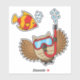 This is an illustration of a yellow orange tropical fish and an owl that does snorkelling underwater. This design is for snorkelling lover, animal lover, fish lover, bird lover, scuba diving lover and underwater lover.
