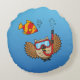 Owl with Snorkel Mask and Tropical Fish Round Cushion