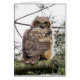 A wonderful image of a sweet fledgling owlet perched on a pine tree limb and staring at the camera.