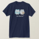 Light blue owl groom wearing a bow tie and fancy ruffled shirt holds hands with his cute owl bride holding a colourful flower bouquet. A fun t-shirt for the newlyweds or bride and groom to be. This funny couples tee can be personalised with your own text. Check out Jenn’s Doodle World for more gifts and wedding planning products with this cute owls design.