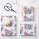 Wrapping paper sheets with an image of a pair of owls in love sitting together on a tree branch.