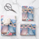 Wrapping paper sheets with an image of a pair of owls in love sitting together on a tree branch.
