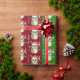 Add a unique touch to your seasonal holiday present with this owl-themed striped Christmas wrapping paper. The gift wrap has a cute watercolor owl wearing a red Santa Claus hat. The background has snowflakes and red and green stripes. There are two custom repeating personalised text areas -- one has your family name, and one has the text Merry Christmas. Both areas may be edited per your preference.