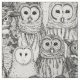 Originally drawn in ink, illustrative owl pattern. Includes Barn owl, Barred owl and Great horned owl. Illustration, owls, birds, great horned owl, barred owl, barn owl, ornithology, nature, nocturnal, North Carolina, half brick repeat, ivory, black