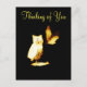 Thinking of you card with two owls on a black background. One owl is perched and the other is flying off in the distance. Includes text on the back, which is easily personalised. ©Annabel Potter