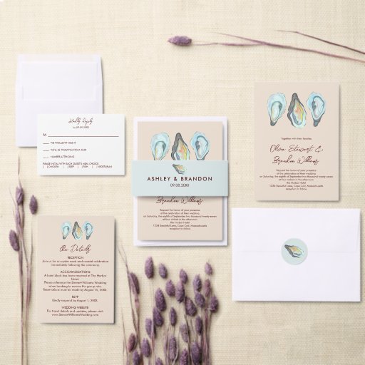 This round wedding save the date card features watercolor oysters arranged on a plate on the front, creating a coastal-inspired and artistic design. The back includes space for a favorite photo along with a QR code that links directly to your wedding website, making it easy for guests to access details with a quick scan. Blending coastal details with modern convenience, this save the date is perfect for couples planning a relaxed, contemporary celebration and coordinates beautifully with matching wedding stationery.