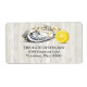 A large oyster with a lemon wedge features at the top of this address label.. It is a versatile label that can be used for most any nautical themed business such as a restaurant or raw bar, special occasion or to convey a coastal, beach look. Add any name and address against the white toned weathered wood plank background. Available with matching products.