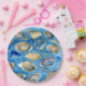 Oysters Clams Seashells Watercolor Blue Paper Plate
