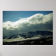 A photograph of snow covered mountains about to be blanketed by a large white cloud.