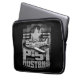The sleeve is made of nice feeling material and seems very durable. I'm not sure how easy it'll be to clean, but the construction seems sound and the fabric is quick thick. I also like the double zipper. The printing is lovely and appears durable. The white on black contrast is nice, and the design very elegant.