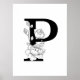 P botanical monogram. Letter initial with peonies Poster